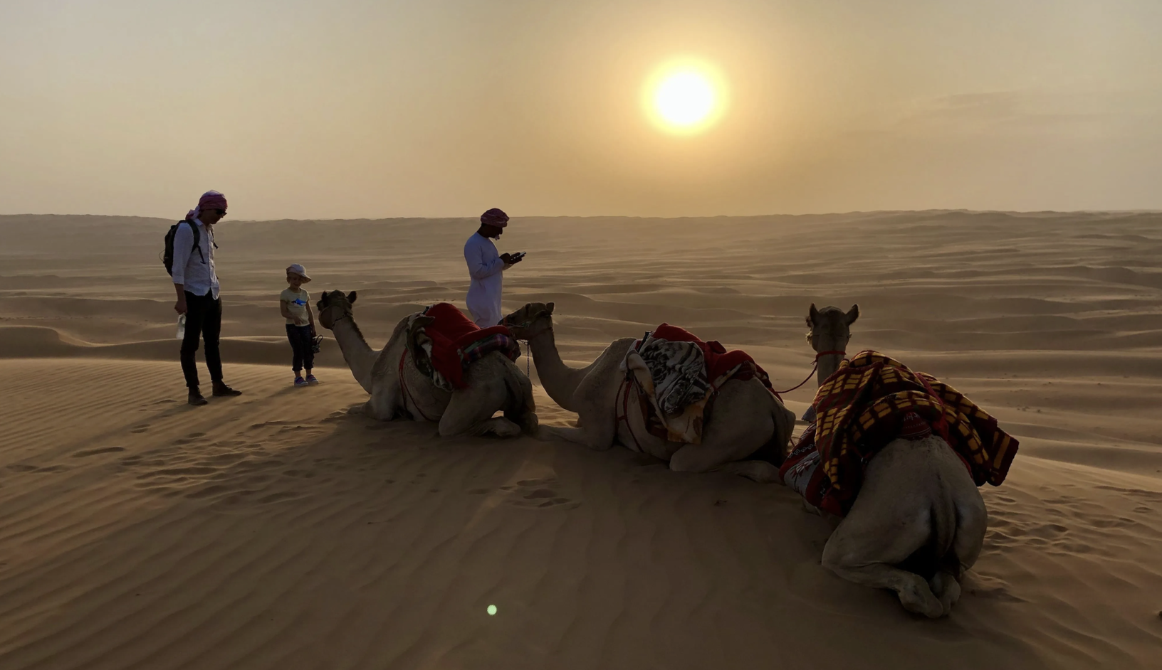 We must have left the camp 45 minutes ago, on camelback. My sense of direction has been completely shot by the twists and turns, and endless sand. Not to mention the evening sandstorm that has been whipping around us for what seems like forever.