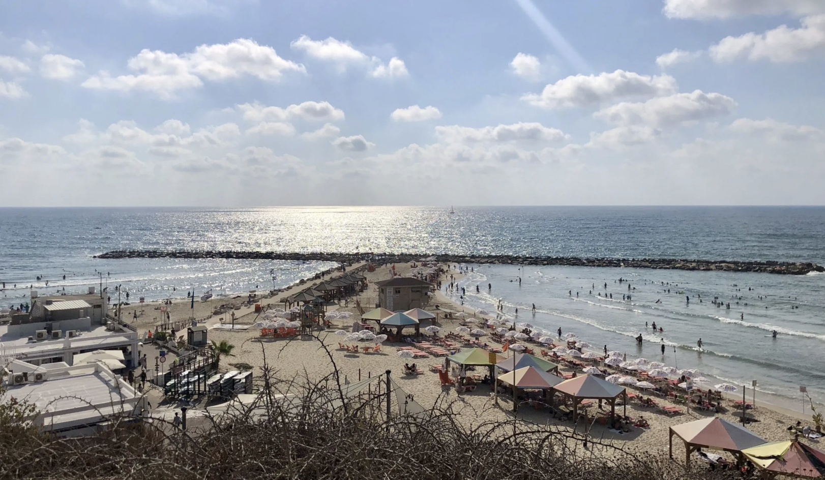 Tel Aviv literally sparkles. The glass-clad highrises vie for the Mediterranean sunshine and beam it right back at ya. Usually directly into your eyes as you drive.
